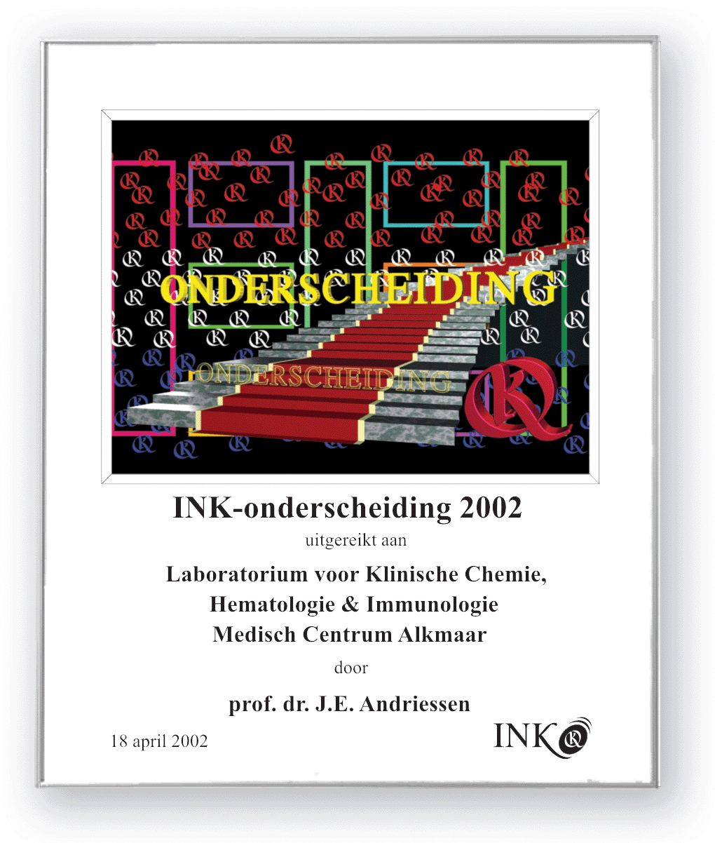 Het Instituut Nederlandse Kwaliteit (INK) heeft als doel het verbeteren van de kwaliteit van de bedrijfsvoering van de in Nederland gevestigde organisaties (bedrijven, non-profitinstellingen en overheid). Het onderstaand hologram was de te winnen erkenning voor gedane kwaliteitsverbetering.