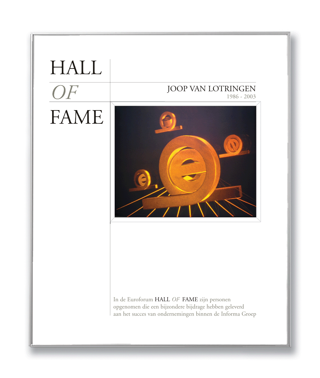 Voor het Eindhovense bedrijf Forum, marktleider in Europa in het ontwikkelen van congressen en cursussen maakten wij het onderstaande hologram. Het hologram is een cadeau voor personeelsleden met een uitmuntende staat van dienst en die een grote bijdrage hebben geleverd aan het bedrijf. Tevens worden zij opgenomen in de Hall of Fame. Een passend geschenk....